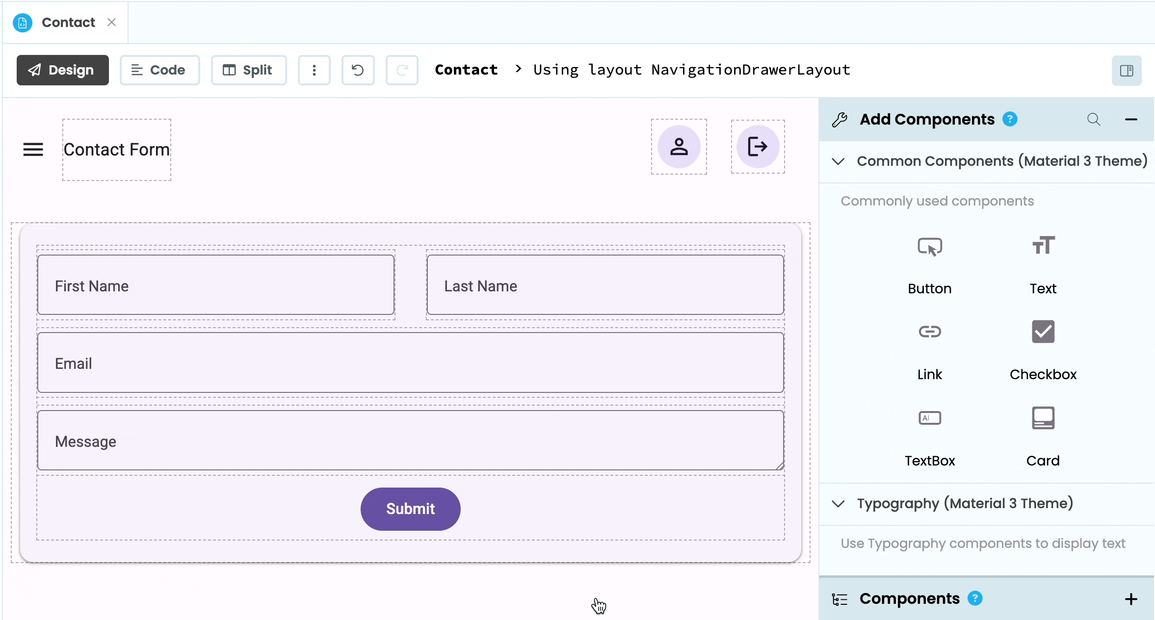 In Anvil, you use the drag-and-drop designer to build your UI. Building your UI visually makes it easier to lay out your page and make adjustments to the look and feel of your app.