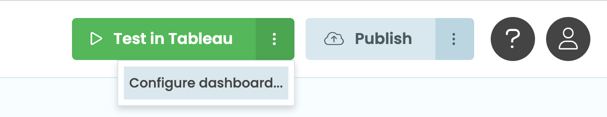 To re-open the “Test in Tableau” dialog, click the three dots next to “Test in Tableau”, and choose Configure dashboard…: