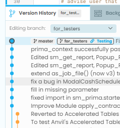 You may want to take a closer look at the top line of the Version History. Both the blue “master” and orange “for_testers” branches are pegged to the exact same commit. So at that point, they are in full agreement.