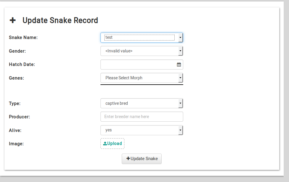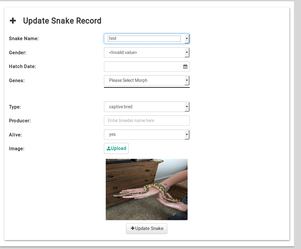 Is there a way to supply the uploader a existing file from the db or not? The use case here is I have a update snake page that when you select a snake from the dropdown I pull all the data from the db and then update the form with the information so it can be modified.