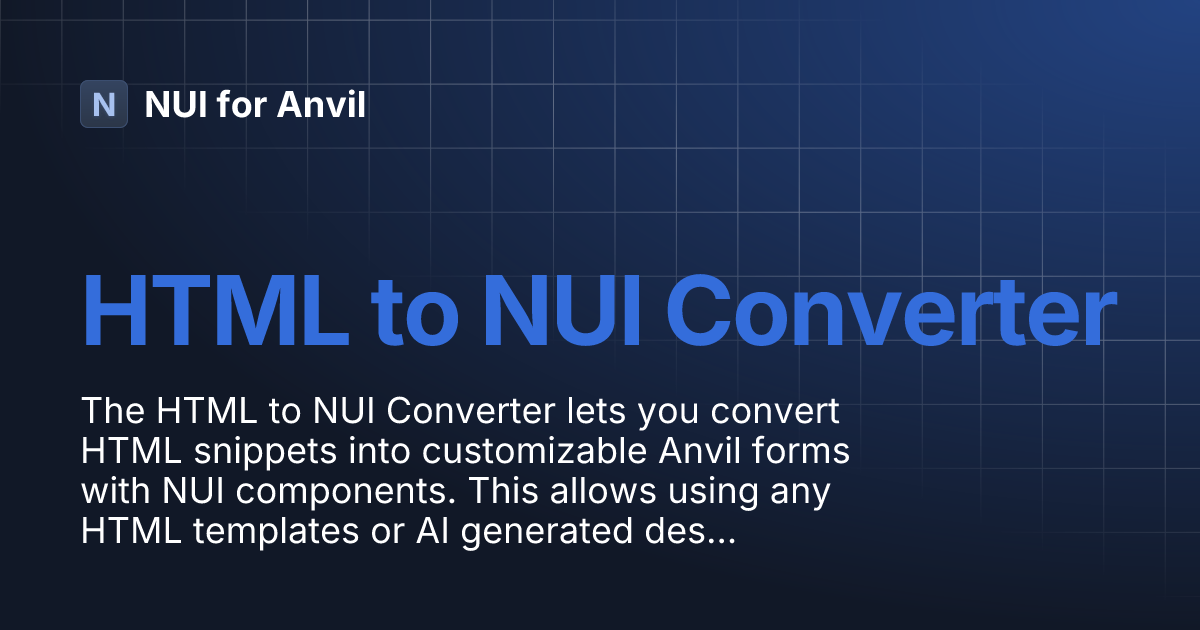 Excited to share this handy tool I have been working on which should allow designing stuff using html/css (or just let AI generate the UI code for you) and get it all converted to an Anvil form with NUI Components