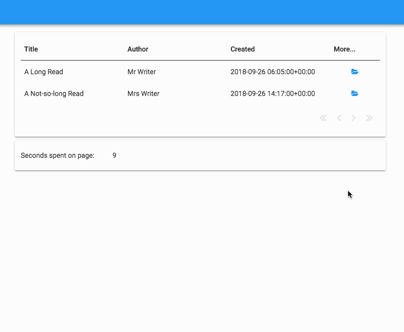 Here’s a clone link for an example app that has a Data Grid full of article summaries, with links to a full article from each row of the Data Grid. There’s a link back to the article list page from the detail page. The article list page has a timer on it, that resumes from where it left off when you browse back to the page (to show that the state of the page has been remembered between visits).